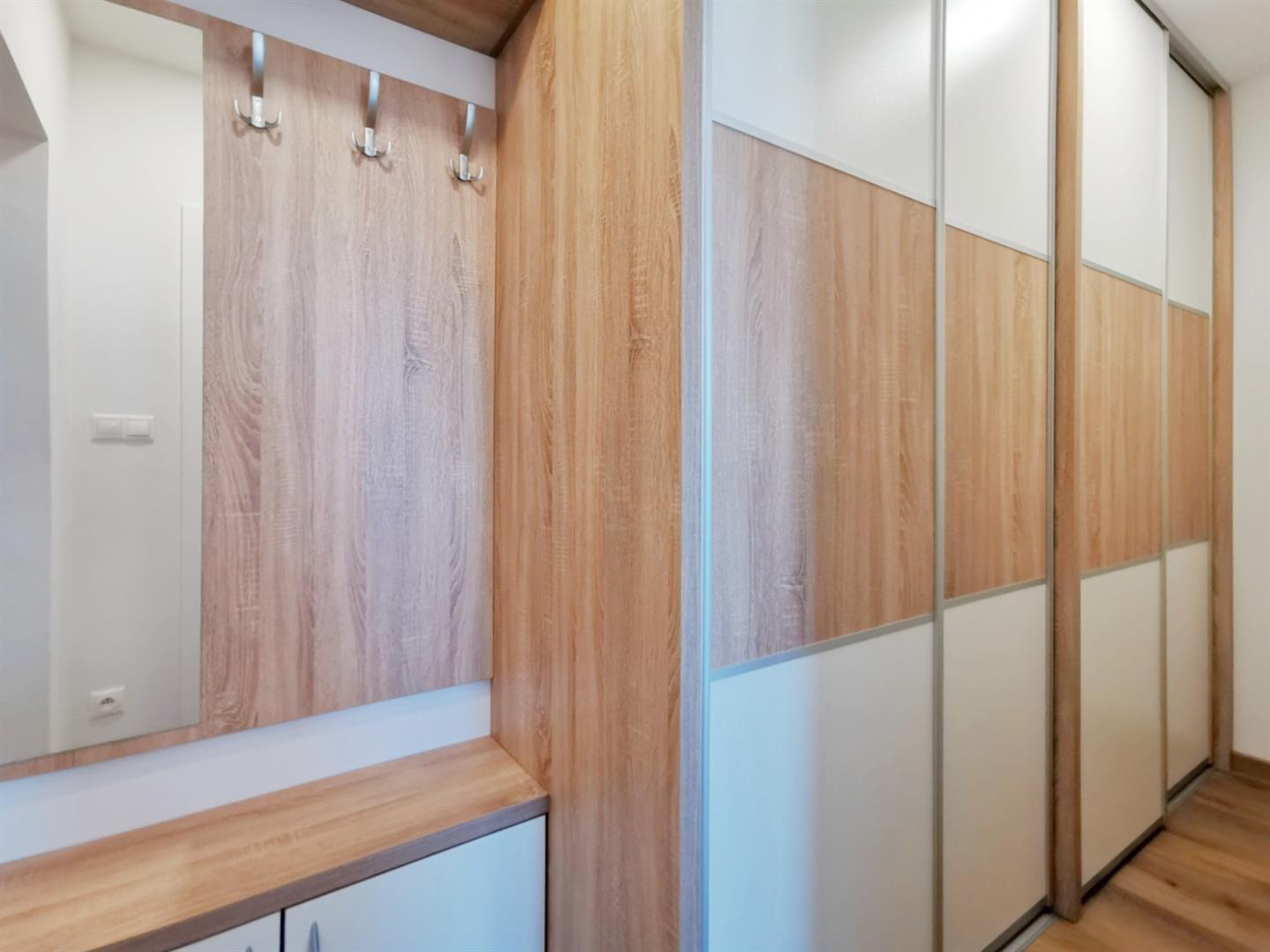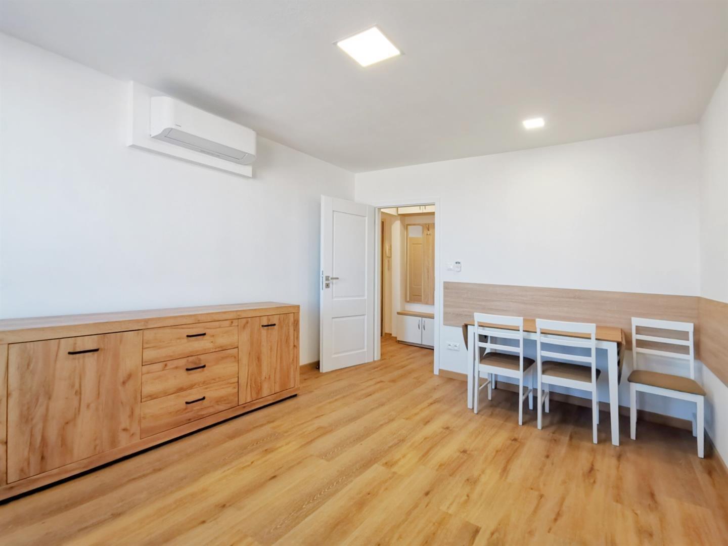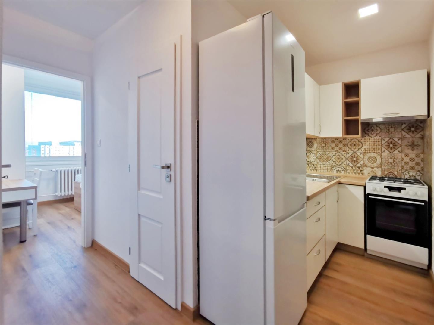 Vybavená kuchyně: lednice, trouba, plyn. varná deska a digestoř. Vybavené pokoje: obývací pokoj - stůl a 3 židle, skříň pro TV, ložnice – postel s úložným prostorem, skříně tzv. na míru, pracovní stolek, v předsíni velká vestavná skříň. V bytě je klimatizace, koupelna se sprchovým koutem a také pračkou, sklep k dispozici, v bytovém domě jsou rozvody TV a internetu.